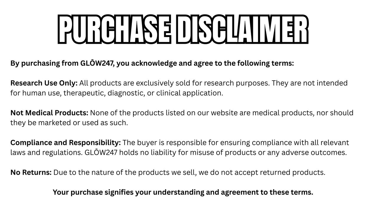I confirm I am over the age of 18 years old and based within the United Kingdom. I understand all products sold by GLŌW247 are for research purposes only.